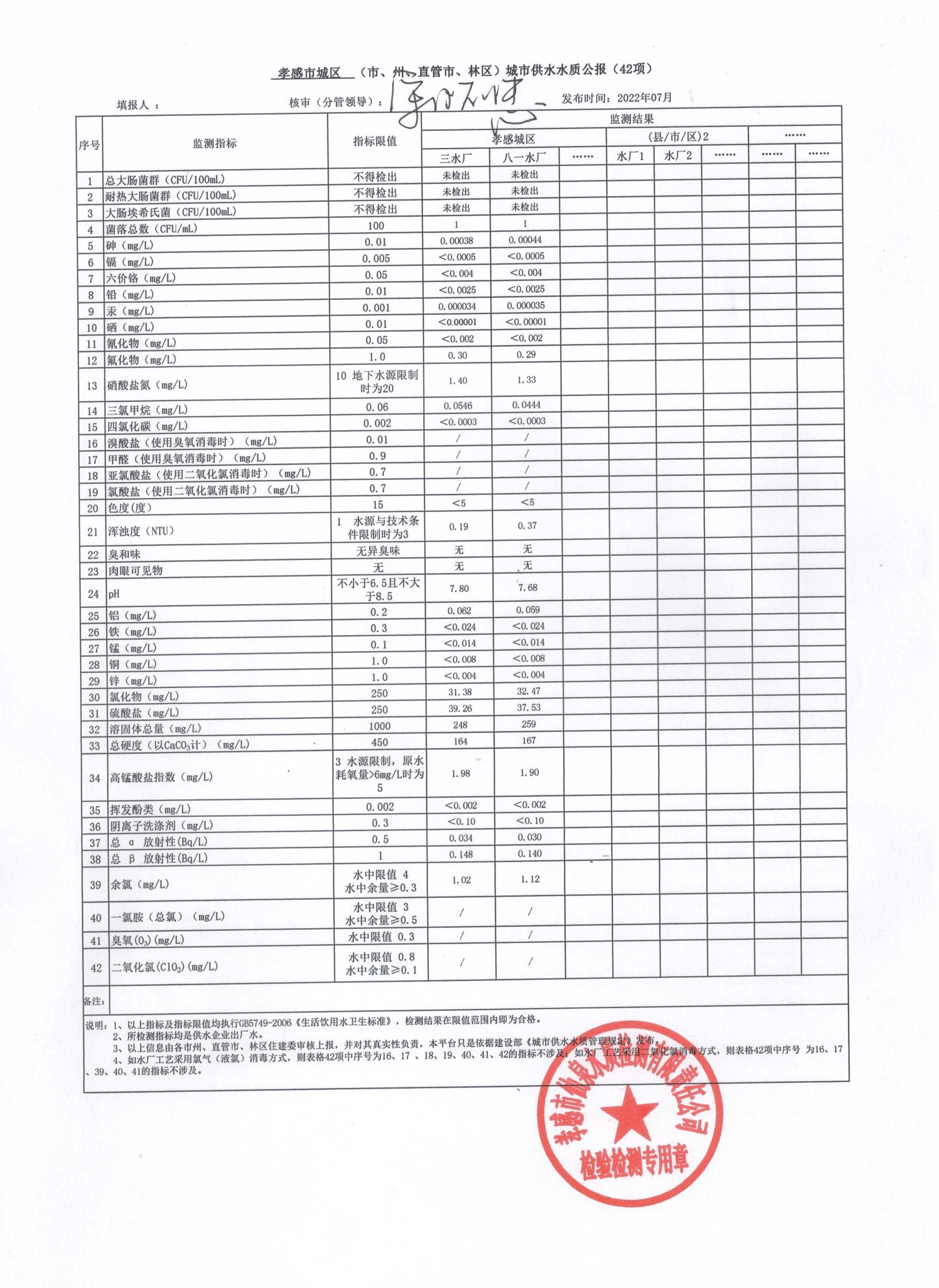 2022年7月水質(zhì)報告
