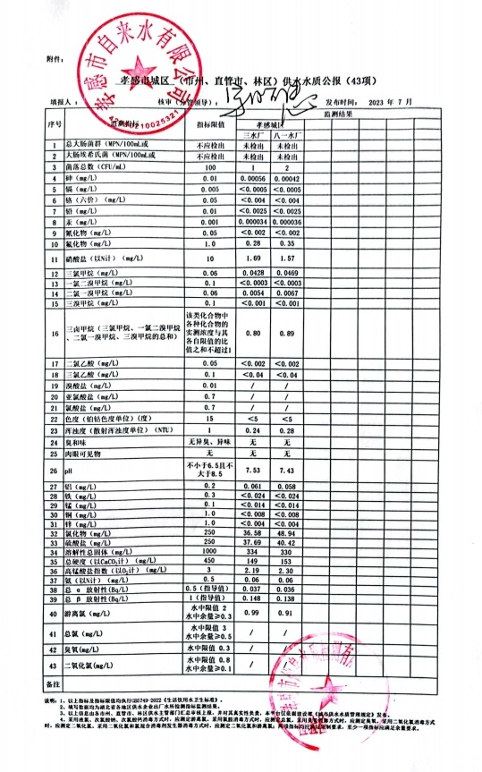 2023年7月水質報告
