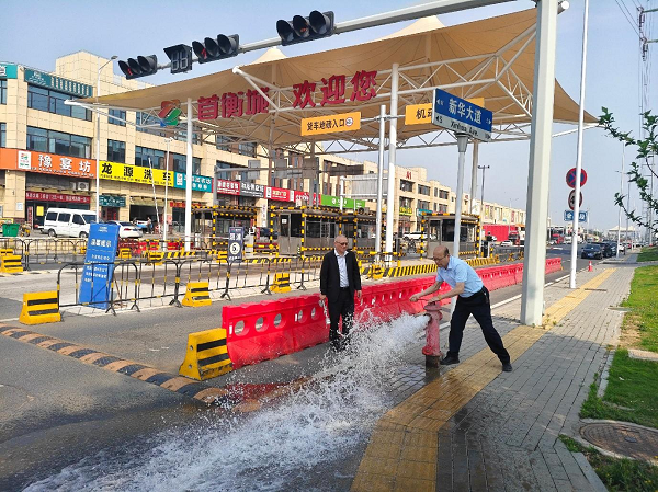 在首衡城農(nóng)產(chǎn)品交易中心,工作人員對(duì)市場(chǎng)入口和市場(chǎng)內(nèi)各貿(mào)易場(chǎng)所的消防設(shè)施進(jìn)行了檢查,逐一開(kāi)閘試水,確保水源通暢,檢查栓體各配件是否完好,有無(wú)松脫,閘閥能否正常啟閉等。
